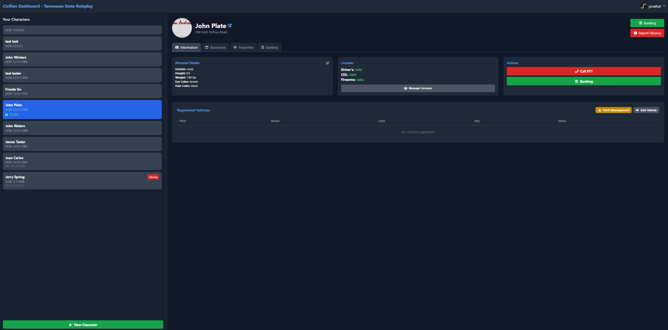 Dedicated Civilian (with bank, businesses, property features) Dispatch, Supervisor, Judicial, and Community Admin Portal